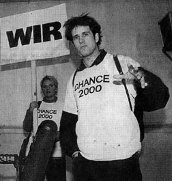 Studentenstreik verschlingensieft worden wäre. Es ist aber zu betonen, daß Verschlingensiefung keinesfalls dazu taugt, den gesamten Streik zu beschreiben, sondern nur - und das unterschiedlich gut - auf einige Aktionen zutrifft. Wie z. B. die Aktion, "Wir geben unser letztes Hemd für die Bildung", bei der sich StudentInnen bei bitterer Kälte vor dem Roten Rathaus bis auf die Unterhose ausgezogen hatten. Ein Kommentator meinte: "Viele kalte Schultern für die Politik". Christoph Schlingensief: ![]()